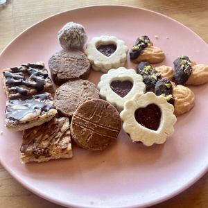チョコとピスタチオでおめかししたほんのり苺が香るサクサククッキー♪