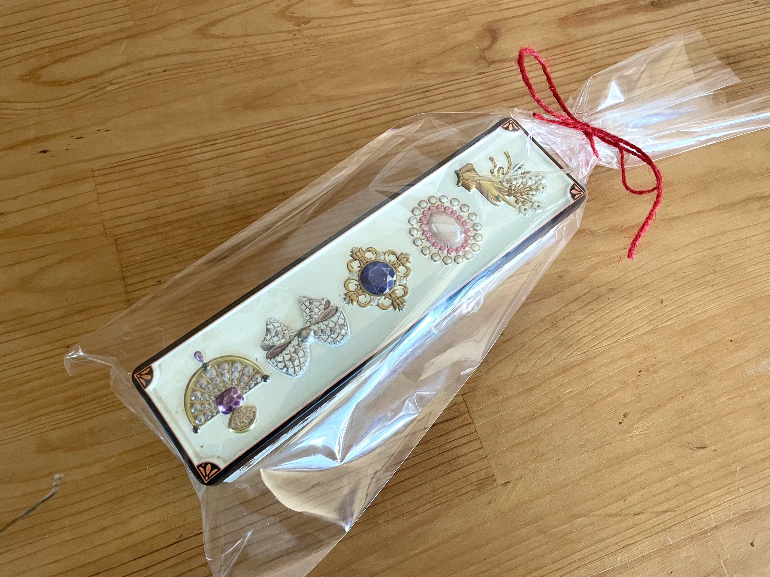 まるで本物の宝石が散りばめられたようなキラキラなビジュー缶に5種類のクッキーが詰まった宝石箱のようなクッキー缶です。